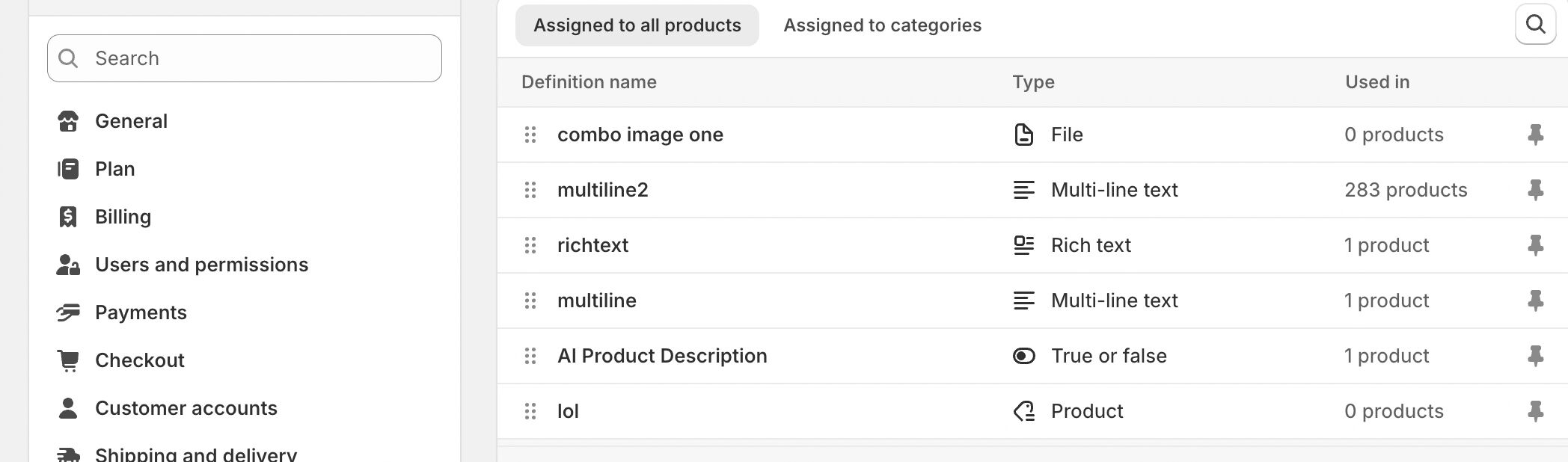 Settings -> Metafields and metaobjects -> Products