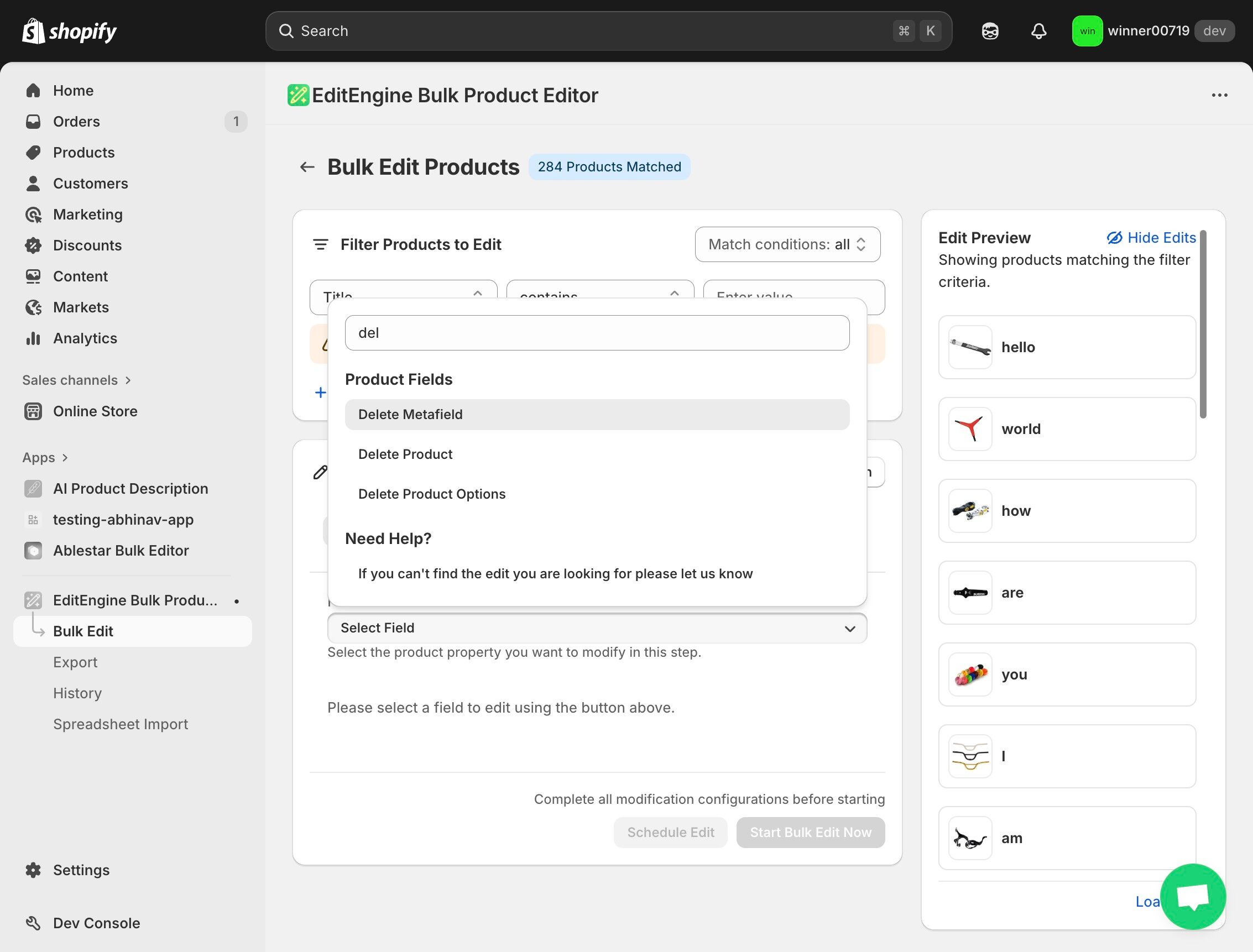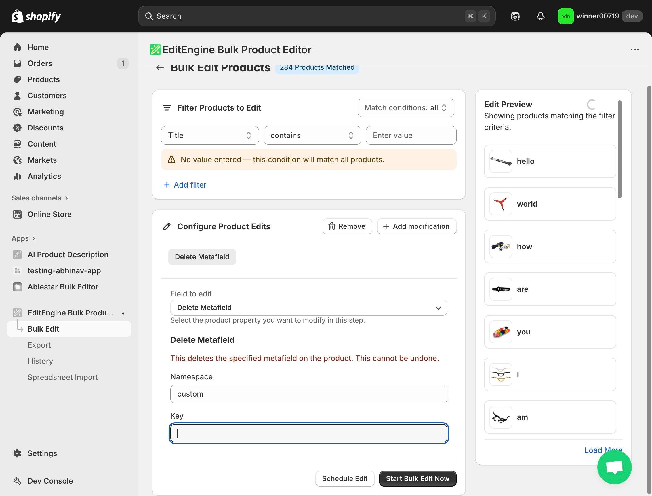 Delete Metafields Using EditEngine Bulk Product Edit